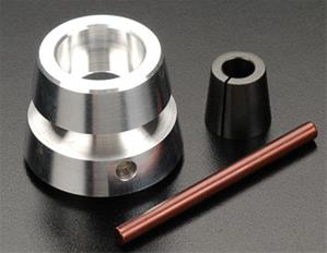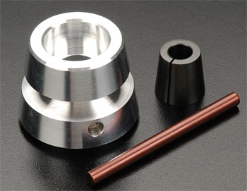 Flywheel: 32mm(1 1/4") OD at rear tapers to 24mm(15/16") OD at front 13mm(1/2")ID 25mm(1") distance front to back Steel collet: 6mm(1/4") ID 13mm(1/2") long